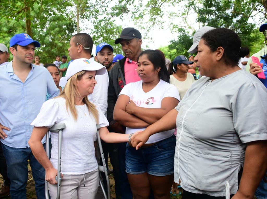 En Manatí, la mandataria visitó a las familias afectadas del barrio Villa Mati, que resultó afectado por las fuertes lluvias. “Aquí los canales de drenaje han recibido tanta lluvia que se han desbordado, inundando las casas. La situación es muy difícil para estas familias; por eso, estamos hoy trayendo 600 ayudas alimentarias, gracias a las donaciones del sector privado que nos han permitido atender rápidamente las necesidades de la gente. El compromiso es entrar con maquinaria para mejorar las condiciones de las calles y seguimos adelante con la limpieza de 122 kilómetros de canales, ya llevamos 31 habilitados, y eso ha ayudado a mitigar un poco las inundaciones”, explicó Noguera.