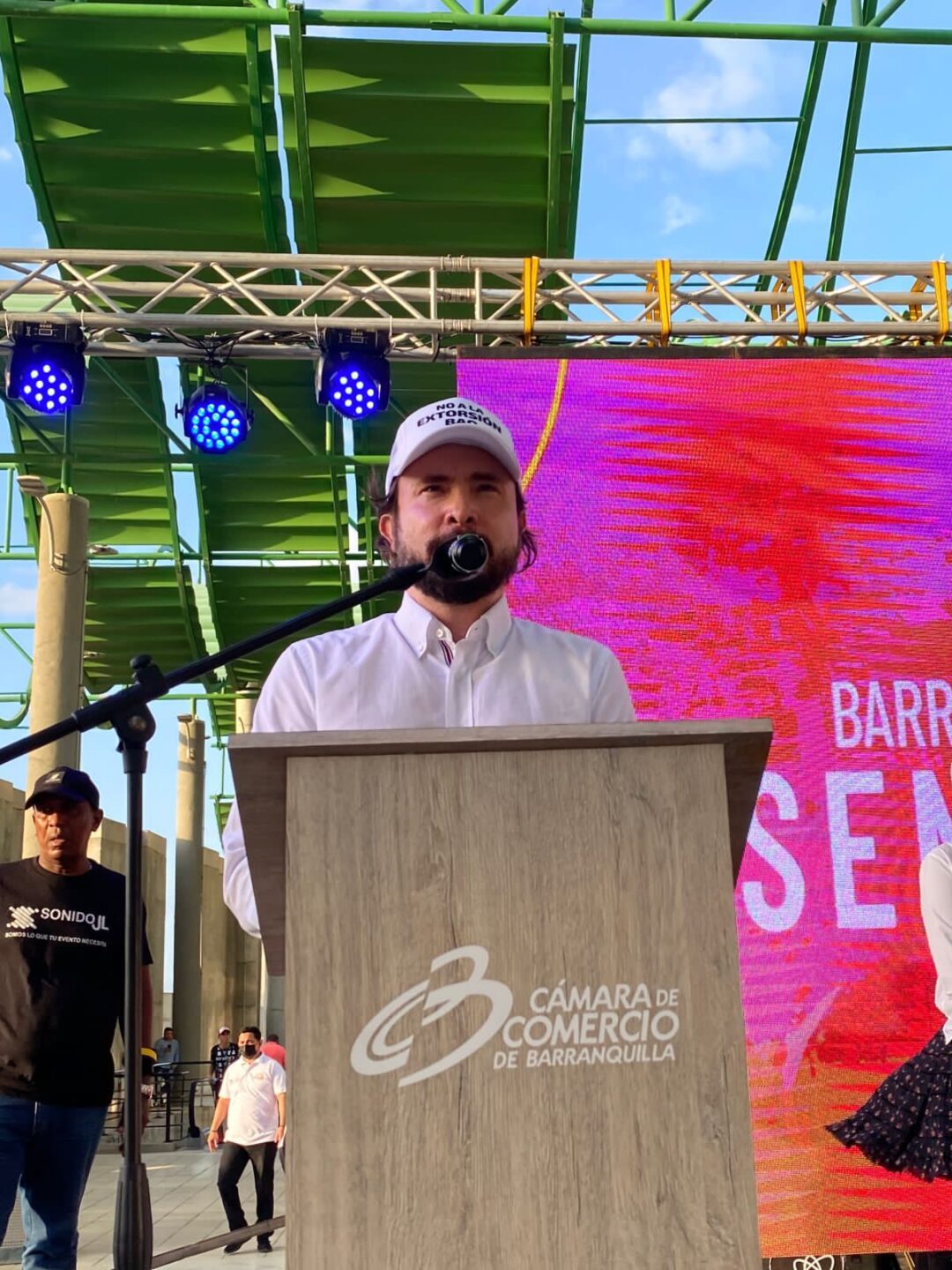 Enseguida, Manuel Fernández, en representación de la Cámara de Comercio, que aglutina a todas las sociedades y personas comerciantes de la ciudad expresó que “Hoy homenajeamos a todos las mujeres y hombres valientes que continúan trabajando con determinación en sus negocios y emprendimientos, que denuncian, levantan su voz, y enfrentan desde acciones pacíficas y simbólicas como esta, el desenfreno criminal y violento de unos pocos. Los extorsionistas sin rostro no son la mayoría. Ellos no tienen cabida en nuestra sociedad, que siempre se ha destacado ante el mundo por ser una ciudad optimista, trabajadora, alegre y pacífica. Con este acto simbólico en el que participan representantes de diferentes sectores económicos e institucionales, lanzamos a una sola voz un mensaje claro y contundente: “en Barranquilla le decimos no a la extorsión”.